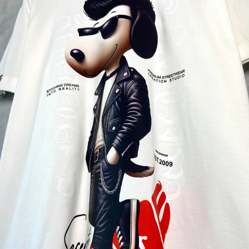 A camiseta STREET SNOOPY é a fusão perfeita entre irreverência e estilo streetwear. Com um design exclusivo, a estampa traz um personagem icônico em uma versão ousada, vestindo jaqueta de couro, óculos escuros e um visual marcante.